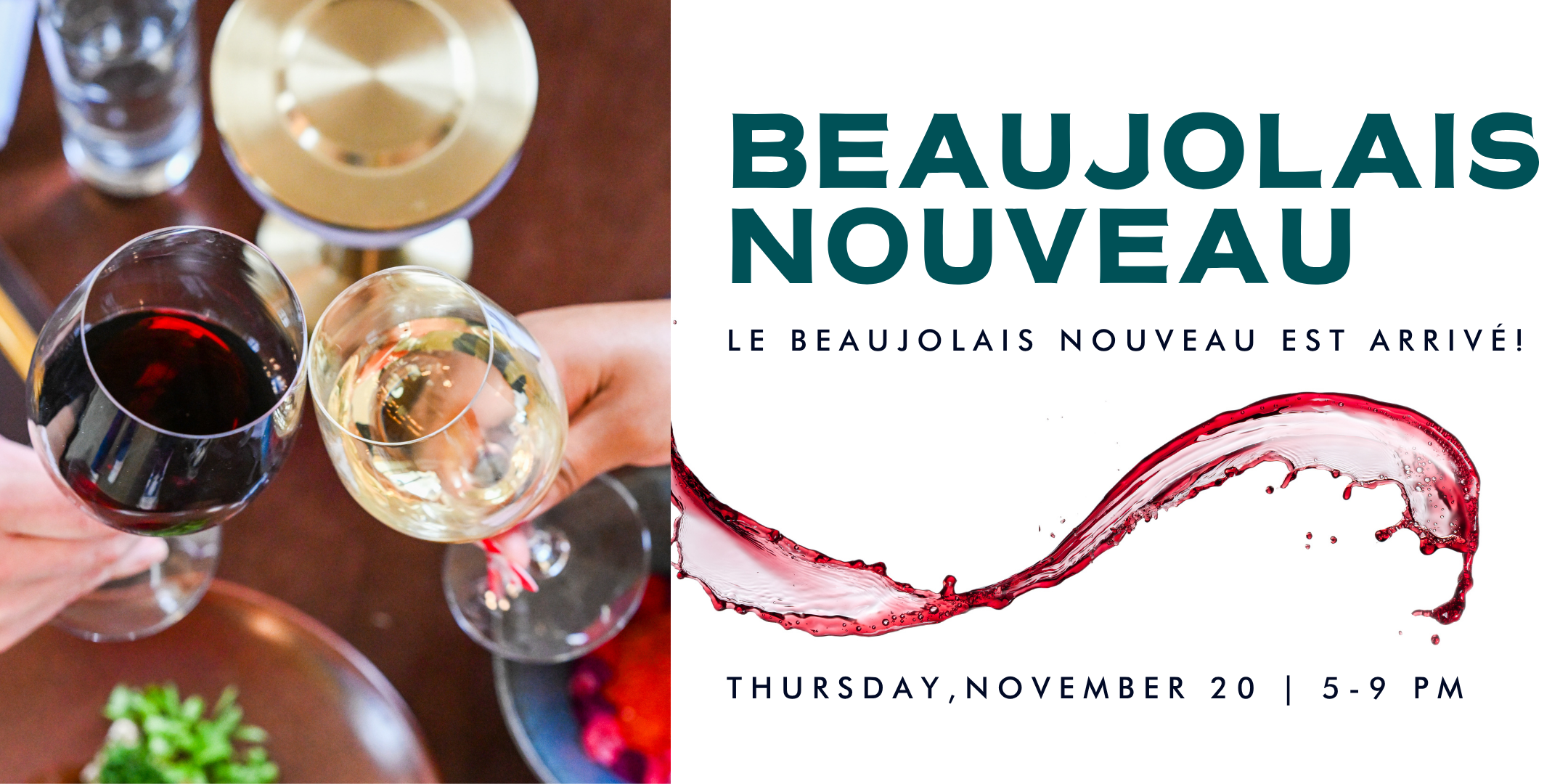 5 – 9 PM | Cedar + Elm | Specialty French Menu + Specialty Beaujolais Nouveau Wines | Live Music