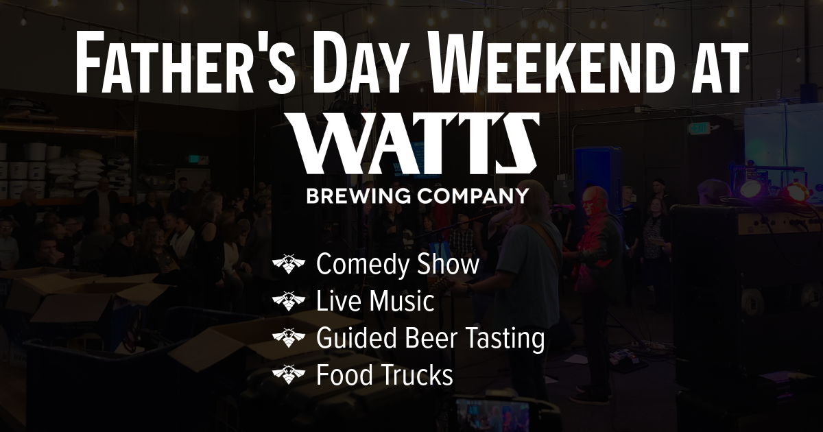 – Funny Father’s Comedy Show, 7pm: Get ready to laugh your socks off at the Funny Fathers Comedy Showcase @ Watts Brewing Company – a night of hilarious dad jokes! Tickets are $25 in advance or $30 at the door (if available).