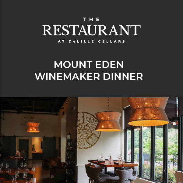Join us for an unforgettable evening as we welcome Mount Eden Vineyards to The Restaurant at DeLille Cellars for an exclusive Winemaker Dinner. Nestled in the Santa Cruz Mountains, Mount Eden is celebrated for its estate-grown Chardonnay, Pinot Noir, and Cabernet Sauvignon—wines that have helped define California’s fine wine legacy.