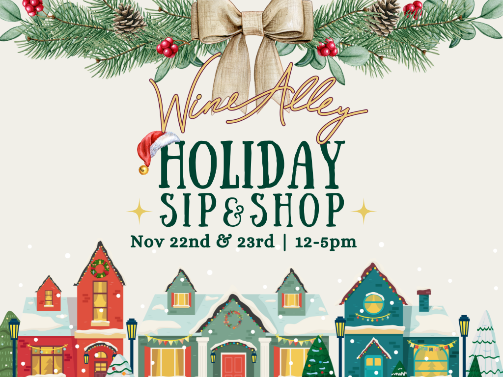 Wine Alley will be hosting a weekend-long Sip & Shop the weekend before Thanksgiving. This is a chance to get your holiday shopping started early while also stocking up on wines for your Thanksgiving festivities! All five Wine Alley tasting rooms will be hosting small businesses for the weekend.