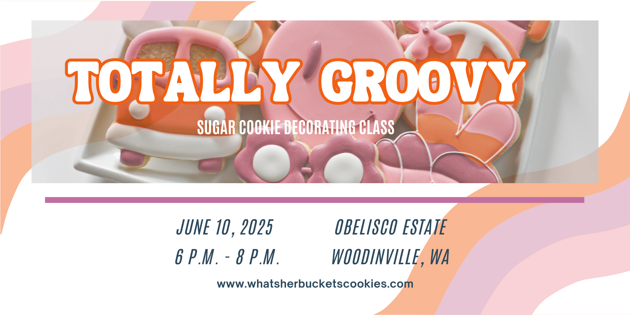Step into a time warp of peace, love, and cookies at Obelisco Estate! In this hands-on class, you’ll decorate far-out sugar cookies inspired by the vibrant colors and iconic symbols of the 60s and 70s—think smiley faces, peace signs, daisy power, and retro vibes all around. Whether you’re a total newbie or a cookie artist, you’ll leave with a set of cookies as sweet as they are stylish. Come chill, create, and get your groove on!