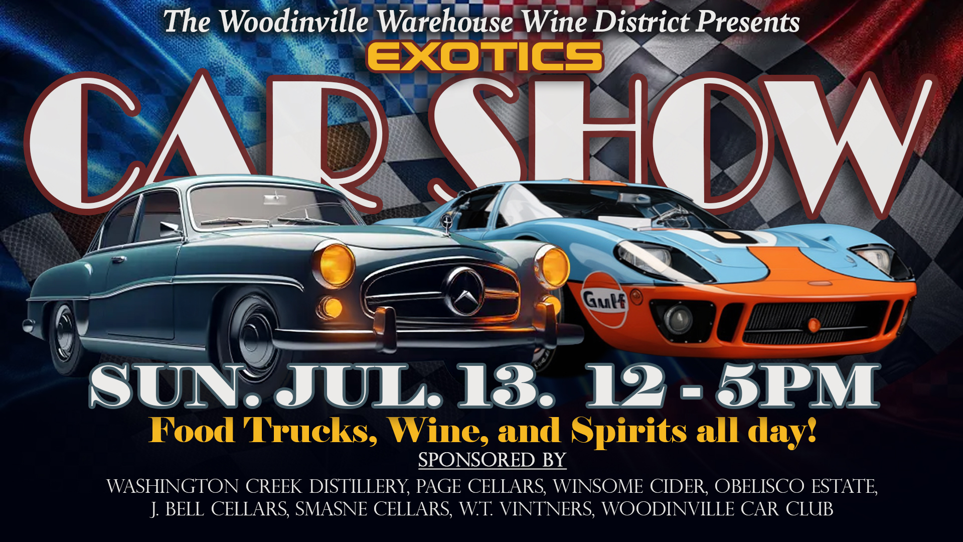 Join us on July 13th to see and hear the cars of your dreams! Exotic cars from all over the world nestled in the middle of the wine, whiskey and hard cider heaven!