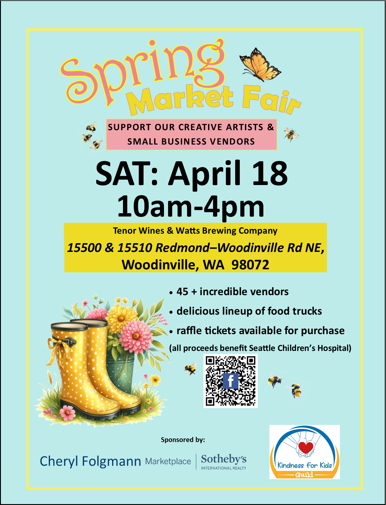 Spring is in the air, Seahawks spirit is everywhere, and the Woodinville Market Fair is bursting back to life! Join us on April 18th as we kick off a brand‑new season filled with incredible local vendors, delicious food trucks, raffle prizes, and all the warm, welcoming energy that makes our community shine. It’s the perfect way to celebrate fresh beginnings and the start of another unforgettable Woodinville Market Fair season. Both of our locations are family‑friendly spaces, perfect for spending a spring day together and celebrating fresh beginnings.