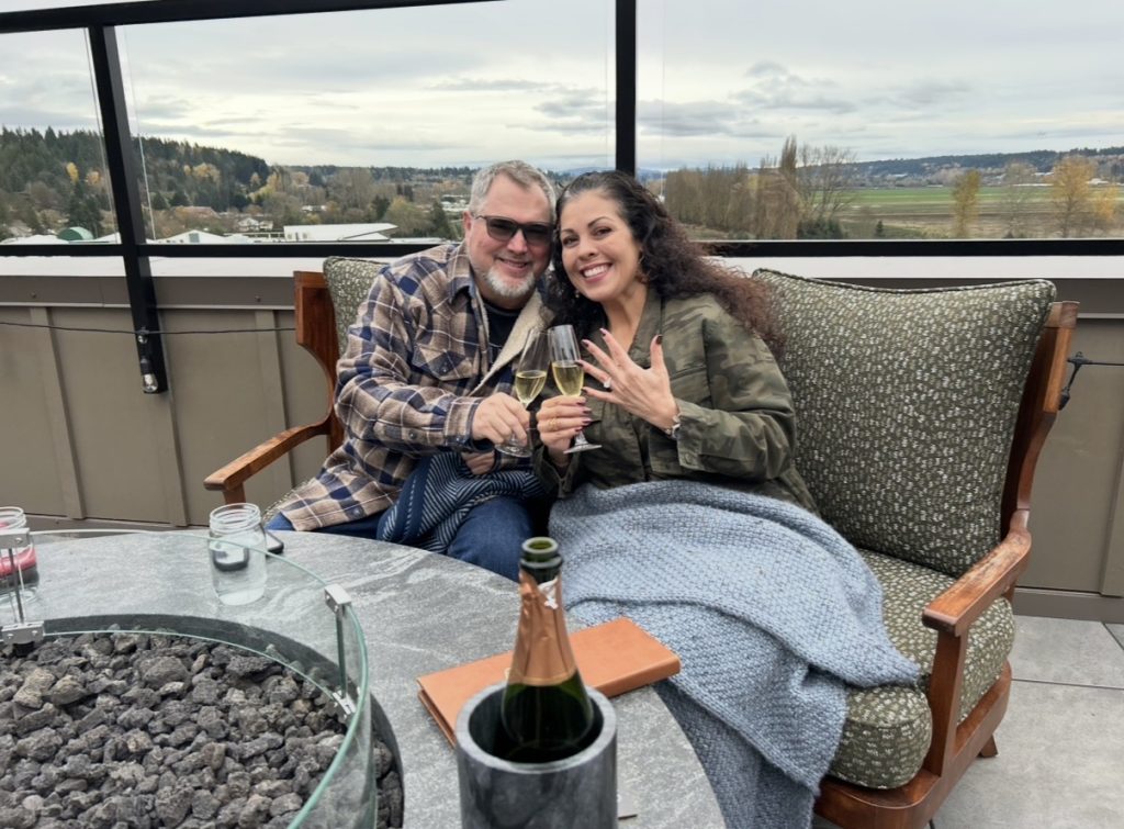 They celebrated with champagne on the rooftop and visits to a few favorite tasting rooms with friends. Woodinville will always be the place where their love story found its next chapter.