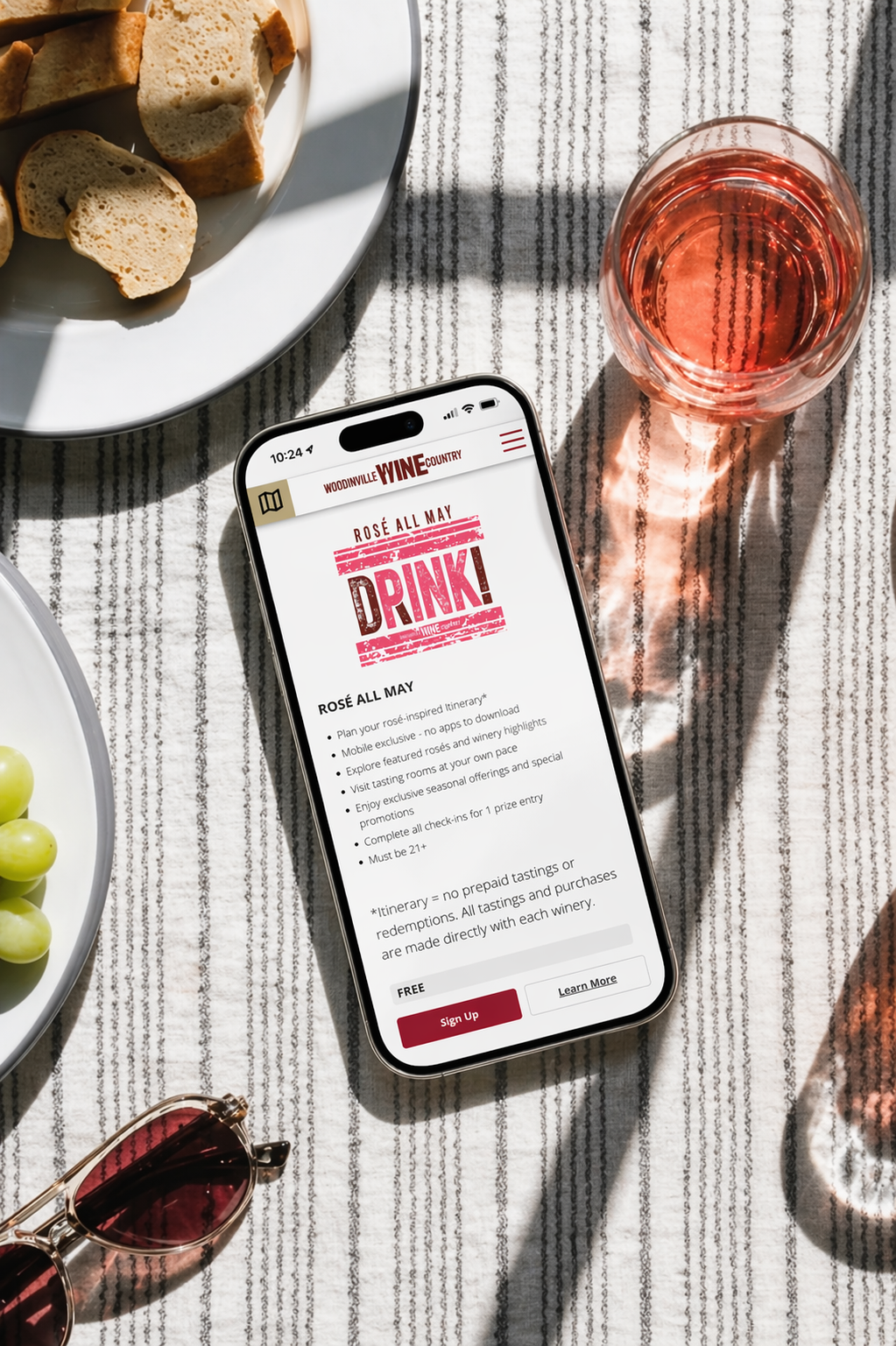 Rosé All May is a self-guided wine tasting experience powered by a free digital wine pass. Explore participating wineries at your own pace, sip featured rosés, and build your perfect itinerary throughout the month.