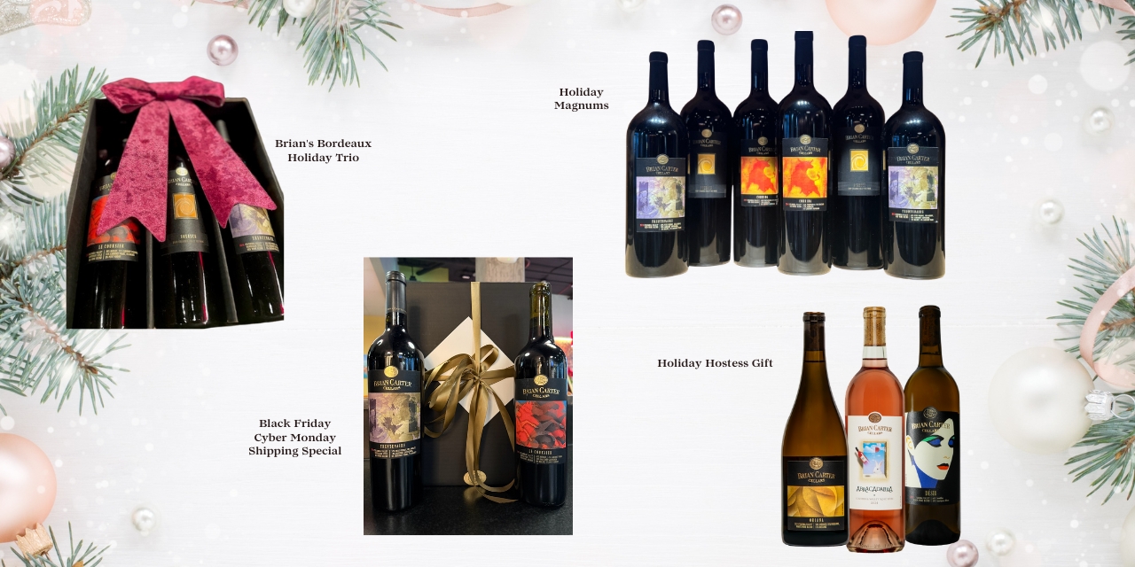 Brian Carter offers a festive lineup of holiday gifts, including Bordeaux-style red blend trios, limited magnums, seasonal shipping specials, and thoughtful hostess sets featuring white, rosé, and Rhône-style blends. These curated selections make it easy to share beautifully crafted Washington wines throughout the season.