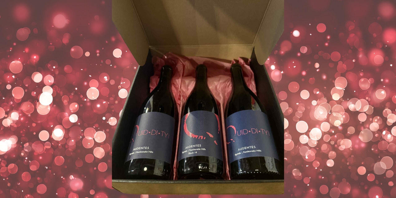Here is the ultimate Quiddity vertical Syrah collection. It is like a hall of fame of Syrahs. Collectively, they have received some tremendous reviews and great scores. But, more importantly, they are darn fine wines. Enjoy our 2019 AUDENTES, 2020 AUDENTES, and 2020 AUDENTES – Block 14 all nestled in an attractive gift box (in winery purchase only, fancy box not available for shipping, sorry).