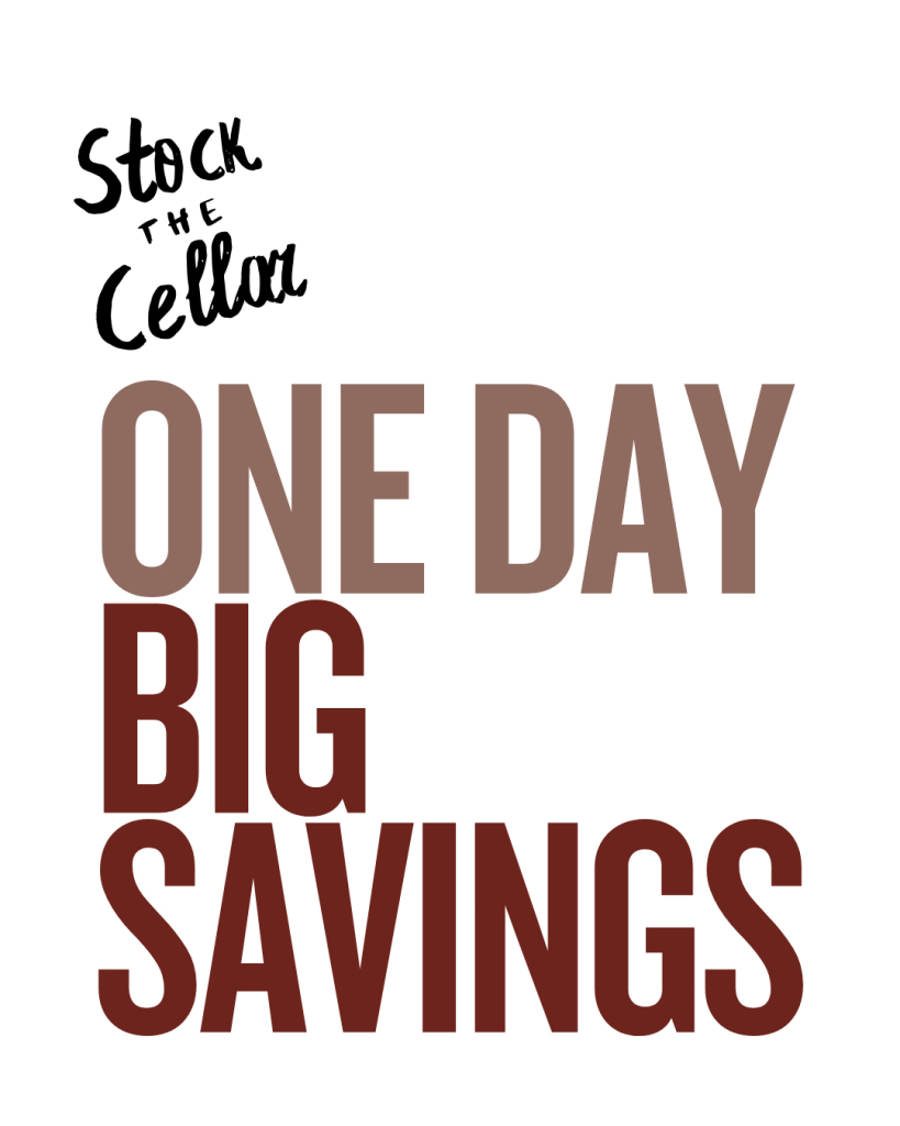 One day. Big savings. We are bringing our wines to Stock the Cellar this November. Sip, choose, and stock your cellar for the season.